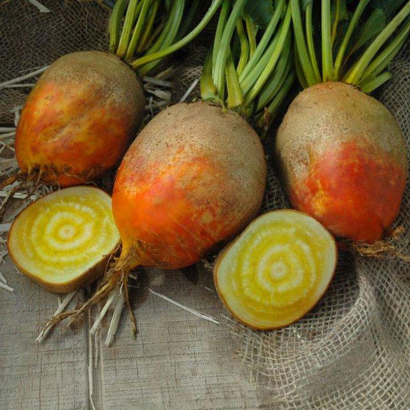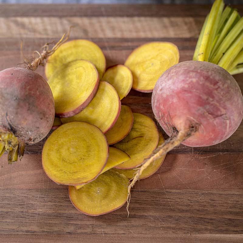 Touchstone Gold is an outstanding golden beet that produces uniformly round roots with smooth, bright orange skin and a vivid golden interior. The deep green tops are appealing for bunching, and the golden interior retains its color when cooked. Compared to other golden beets, Touchstone Gold offers a better germ, more uniformly round roots, and much smoother shoulders.