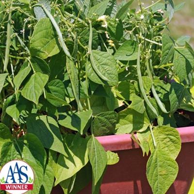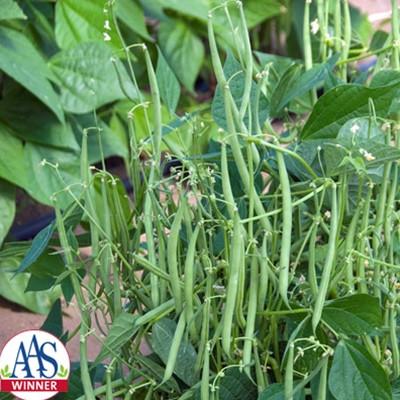 Mascotte green bean, an All America Selections winner, is the ideal bean to offer in containers or window boxes. Dwarf, upright green bean plants grow 16 to 18" tall and offer a continuous yield of medium green colored beans. Mascotte's stringless pods are slim and measure 6" in length. Their texture is crisp and they have an excellent bean flavor.